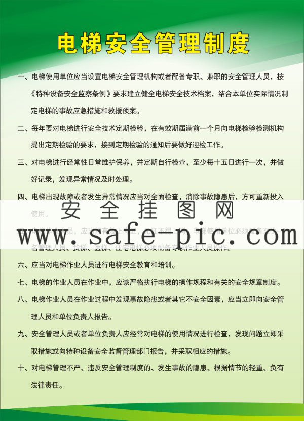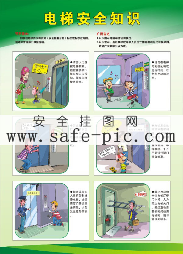电梯使用安全须知挂图 编号:AN2353每套16张 规格:52cm*72cm